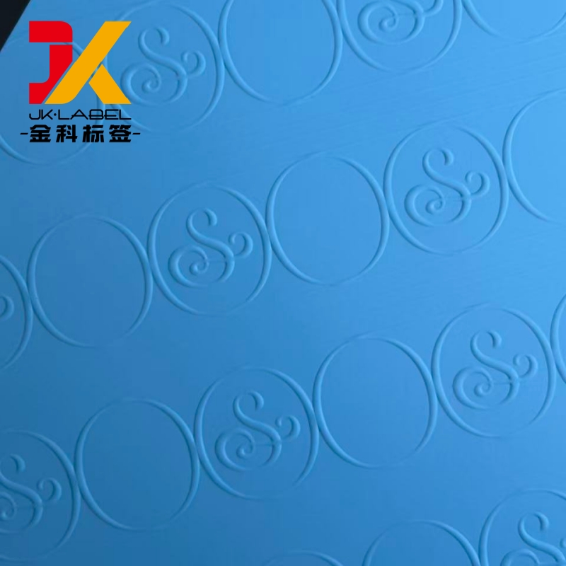 El patrón en relieve de la superficie crea una sutil textura tridimensional que mejora el reconocimiento de la marca, manteniendo una apariencia limpia y refinada. Los elementos de estampación en caliente resaltan información clave de la marca, como logotipos, nombres de productos o marcas de certificación, lo que proporciona un claro contraste con el papel de fondo mate o liso.