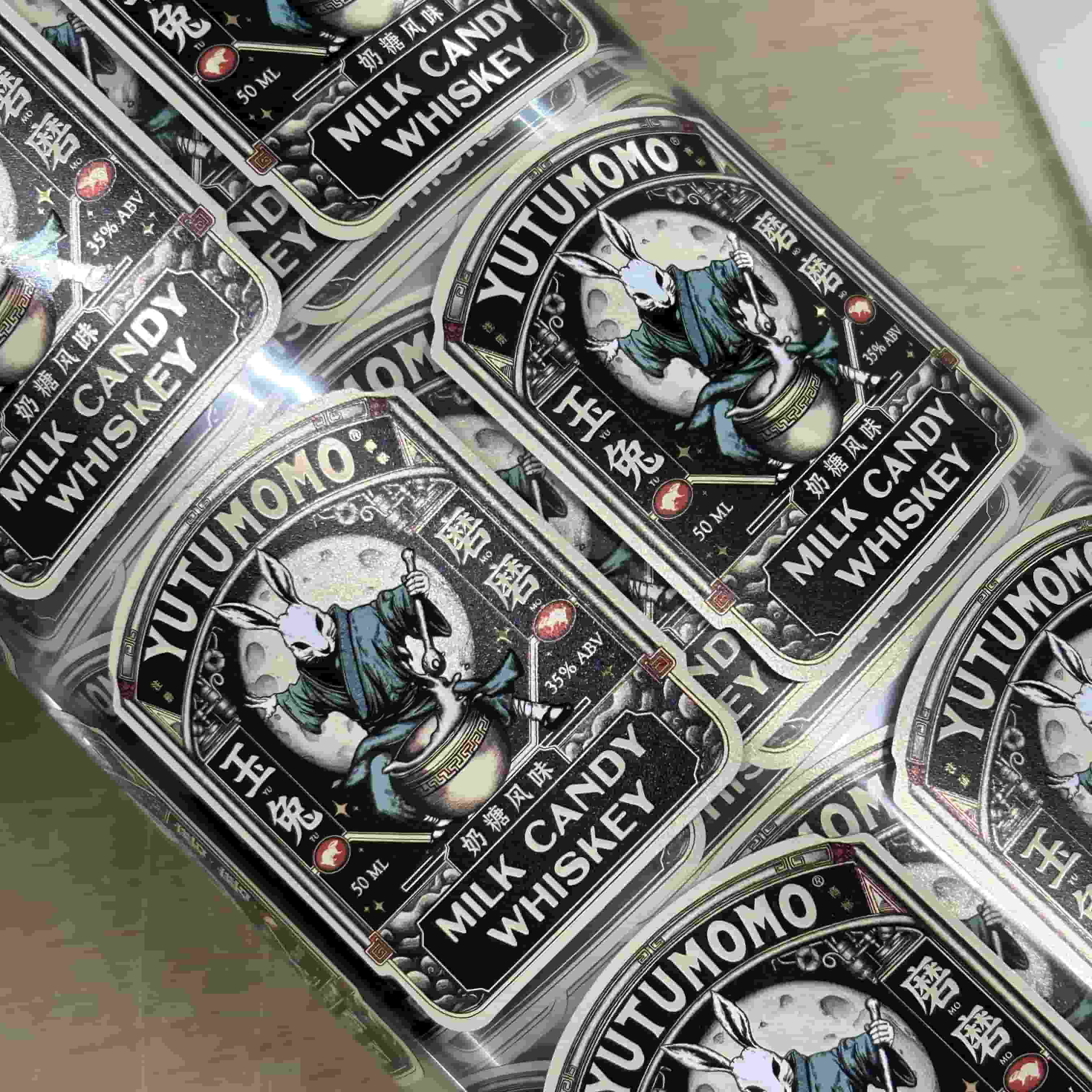 La obra de arte integra una ilustración detallada, detalles metálicos texturizados y una superficie mate suave que reduce el brillo a la vez que mantiene una estética lujosa. Esto la hace ideal para botellas de whisky, bebidas de edición limitada, marcas de confitería y empaques de regalo creativos.